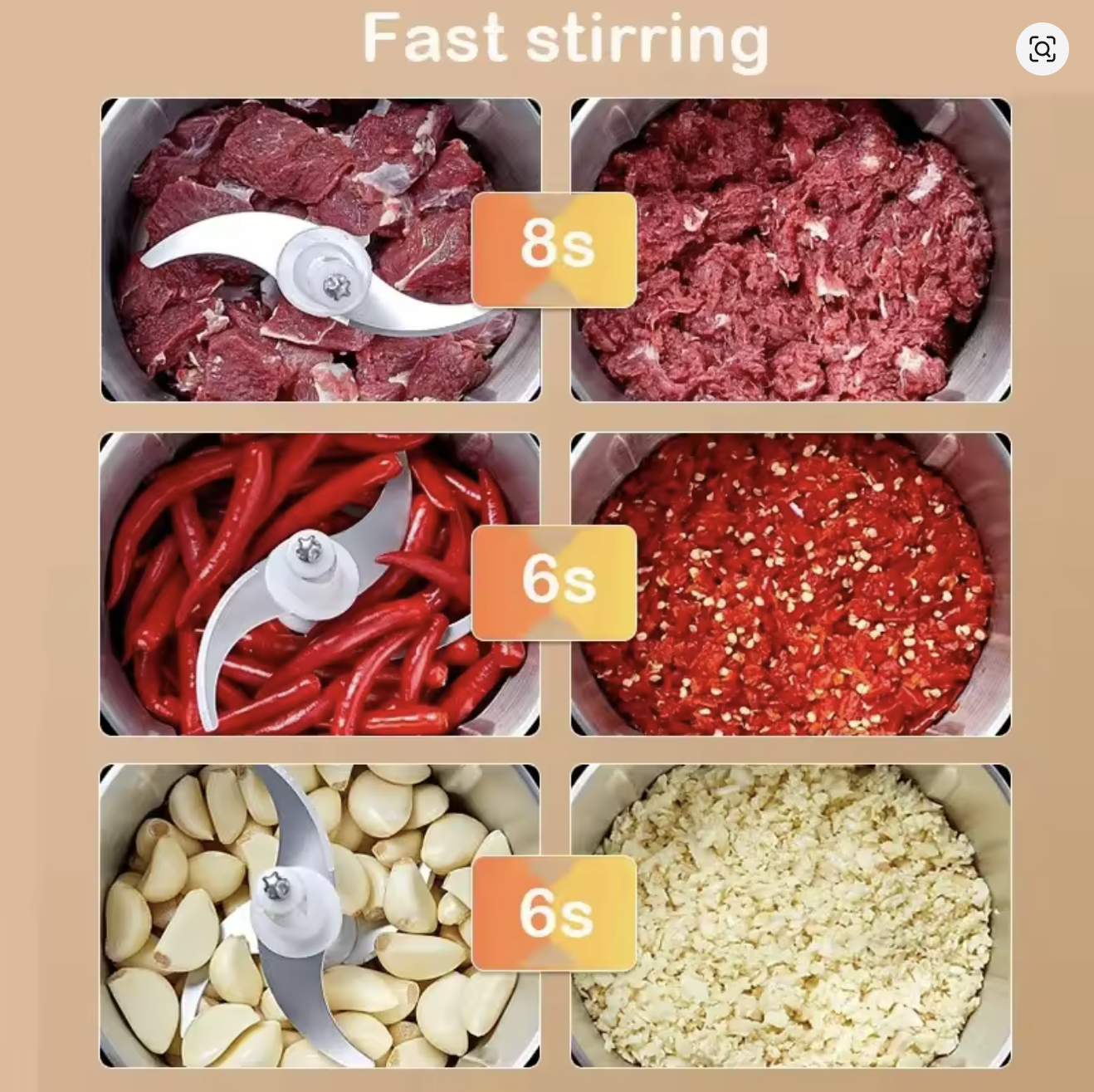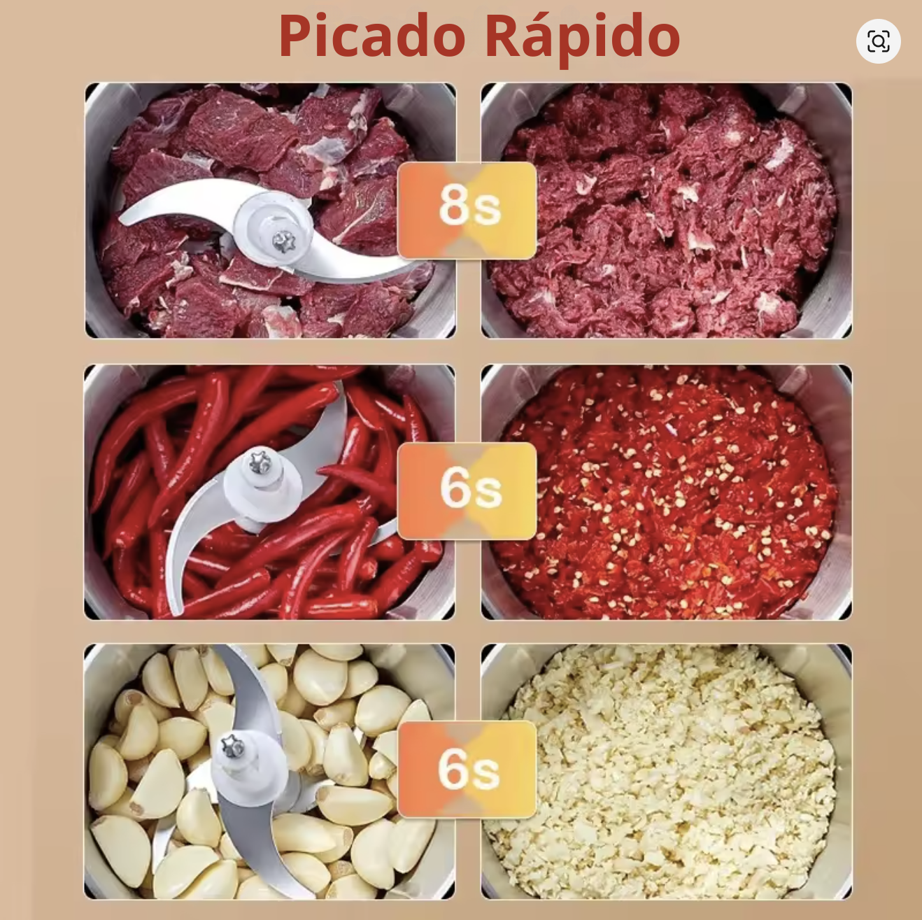 ⚡ Rapidez brutal: pica carne, verduras, frutos secos o hielo en solo 8 segundos.